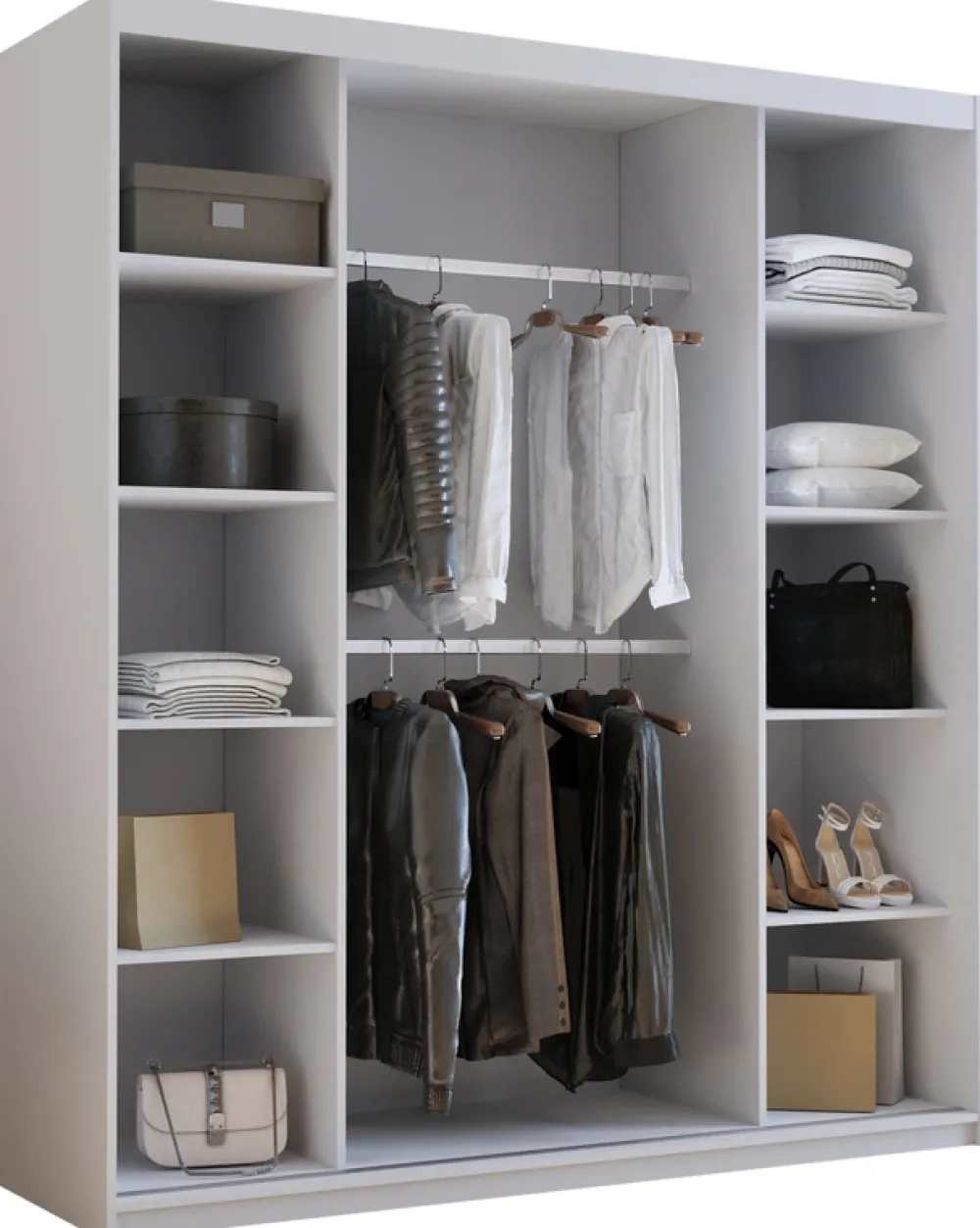 Szafa HOT to mebel, który doskonale wpisuje się w potrzeby współczesnych użytkowników. Minimalistyczny design w bieli pozwala na łatwe dopasowanie do różnych aranżacji – od skandynawskich po loftowe. Dzięki trzem przesuwnym skrzydłom zyskujesz wygodny dostęp do wszystkich stref przechowywania, a lustro na froncie dodatkowo zwiększa funkcjonalność mebla.