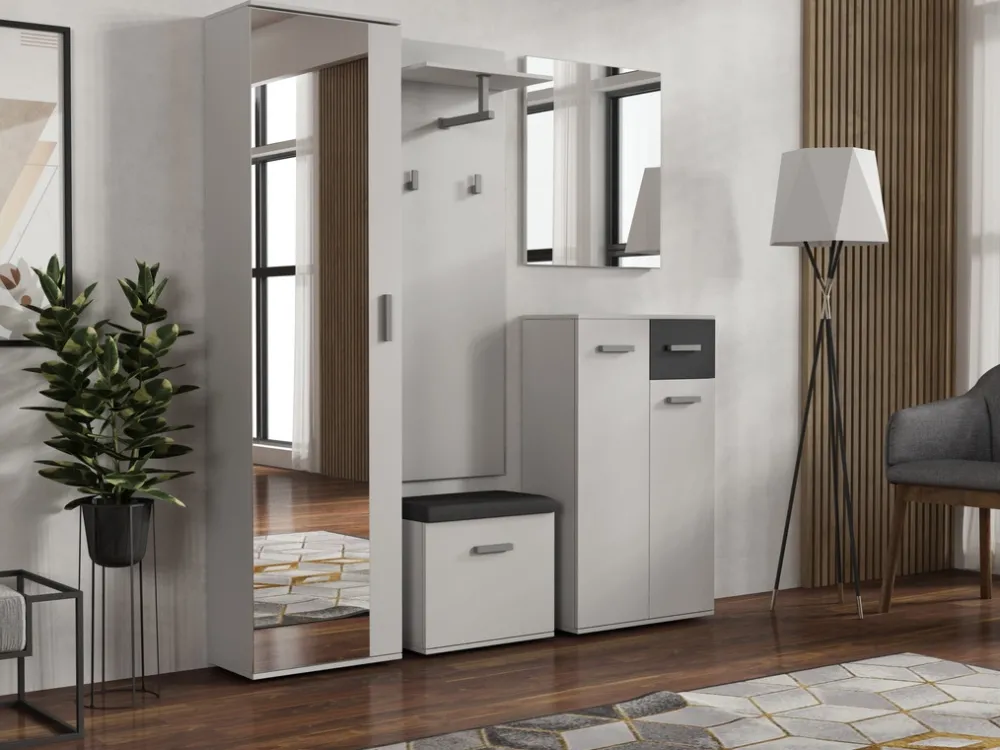 Jednym z kluczowych elementów szafy JOVITA jest lustro, które nie tylko pełni praktyczną funkcję, ale także optycznie powiększa przestrzeń przedpokoju. Dzięki solidnym materiałom, z których została wykonana, zapewnia długotrwałą satysfakcję z użytkowania, łącząc estetykę z funkcjonalnością.