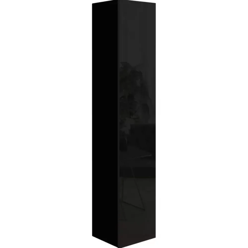 - Zamykana szafka wisząca o szerokości 35 cm i wysokości 175 cm z trzema półkami.
