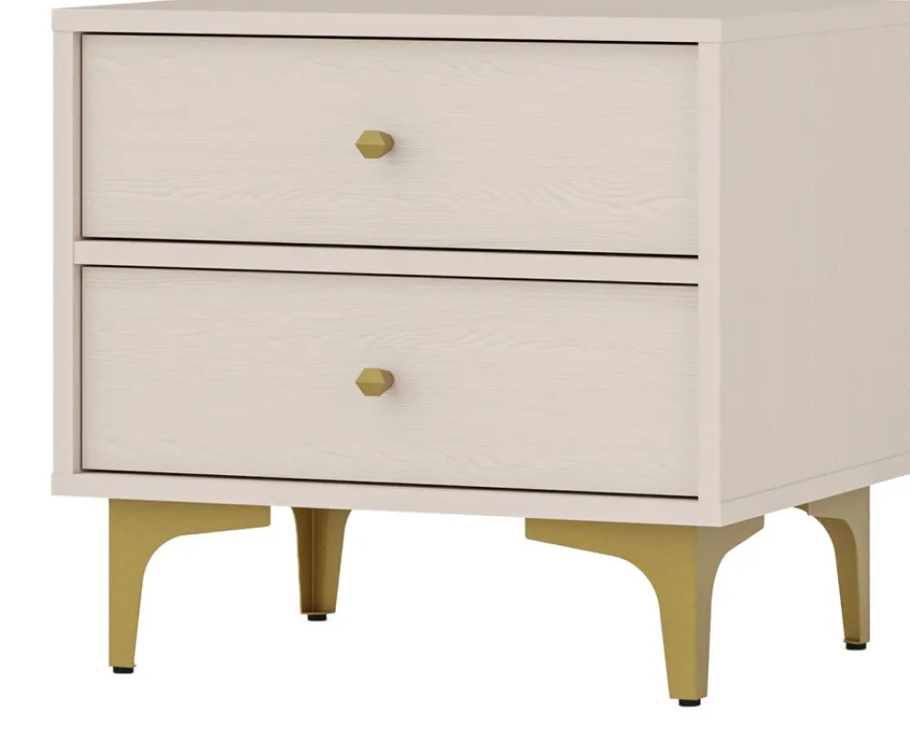 - Szafka nocna do sypialni TOKEN posiada dwie szuflady osadzone na prowadnicach kulkowych z pełnym wysuwem. Uchwyty oraz nogi wykonano z metalu. Korpus oraz fronty szafki nocnej zostały wykonane z płyty laminowanej 16 mm.