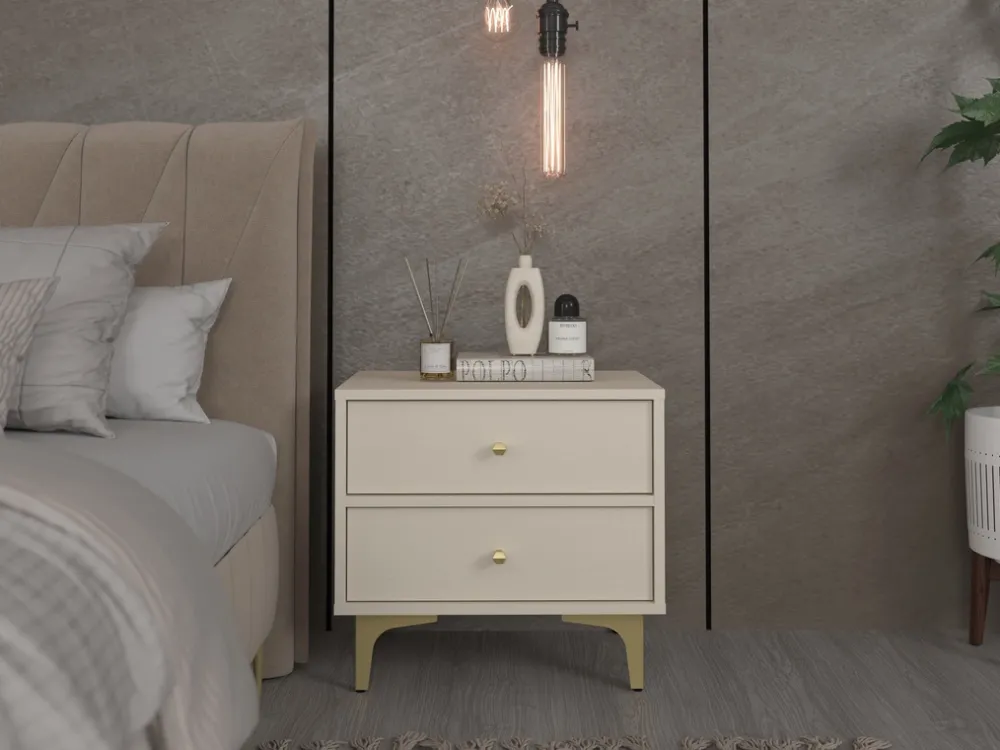 Nogi oraz uchwyty szafki nocnej zostały wykonane z metalu, który gwarantuje solidność oraz długoletni, świeży wygląd. Wysokość nóżek, wynosząca 13,5 cm pozwala na swobodną pracę popularnych odkurzaczy samojezdnych, dzięki czemu czystość i prządek będą bardzo łatwe do utrzymania.