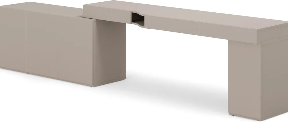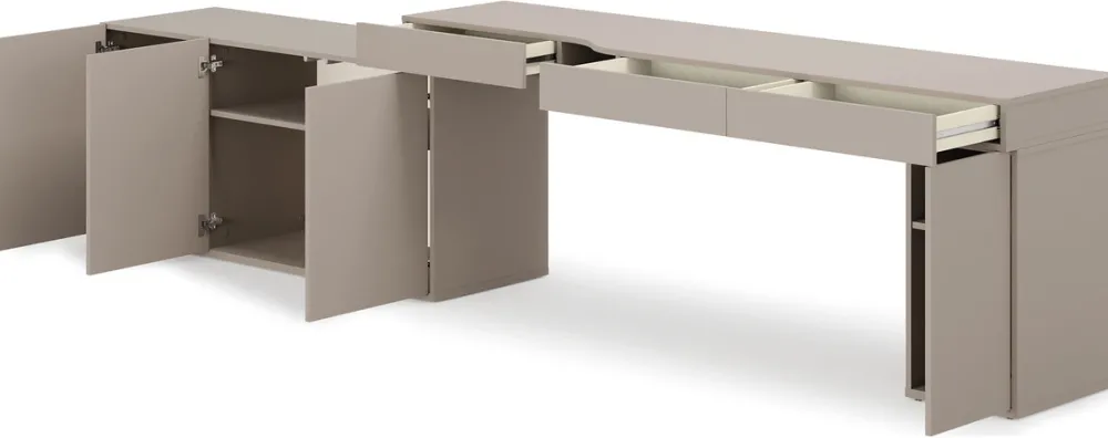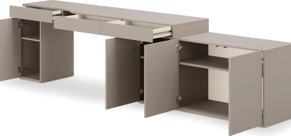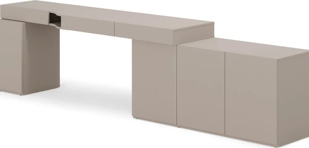- Zestaw WOOW z komodą, biurkiem prawym i kontenerkiem w kolorach szampański i clay gray to praktyczne wyposażenie pokoju nastolatka. Duży blat, liczne półki i szuflady zapewniają wygodę nauki, porządek i styl w nowoczesnej młodzieżowej aranżacji.