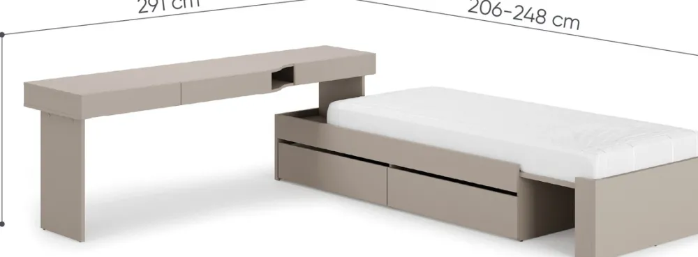 - Łóżko z biurkiem WOOW w kolorach szampański i clay gray to idealne rozwiązanie do pokoju nastolatka. Kompaktowy zestaw łączy miejsce do spania, nauki i przechowywania – funkcjonalny wybór do małych, nowoczesnych wnętrz młodzieżowych.