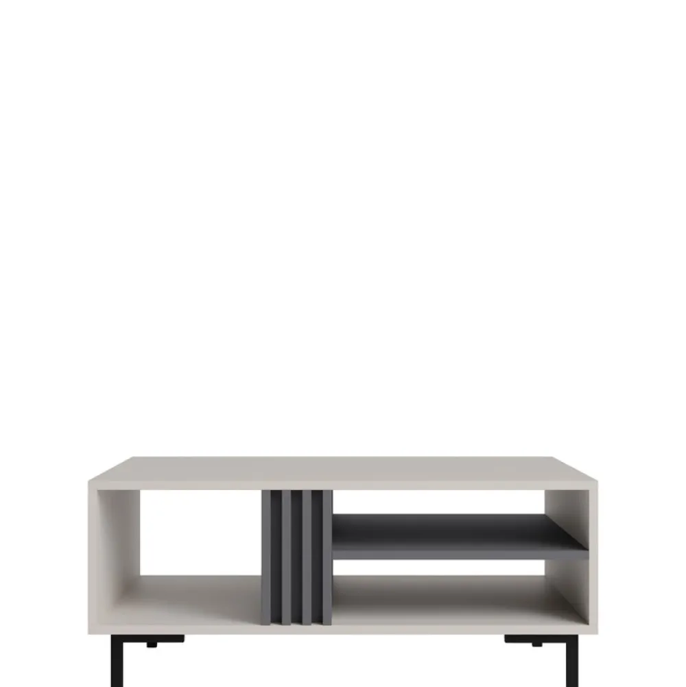 - Stolik kawowy AGRA w kolorze kaszmir z lamelami antracytowymi to połączenie nowoczesnego stylu i funkcji. Półka i wnęka ułatwiają przechowywanie, metalowe nogi dodają charakteru, a obrzeża ABS chronią przed uszkodzeniami.