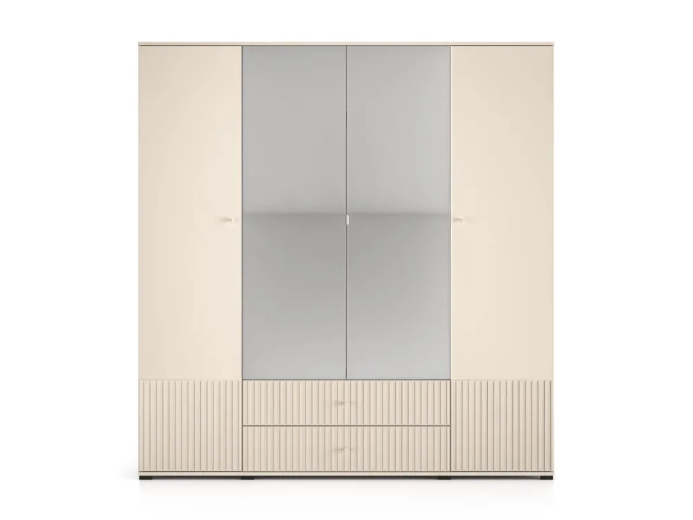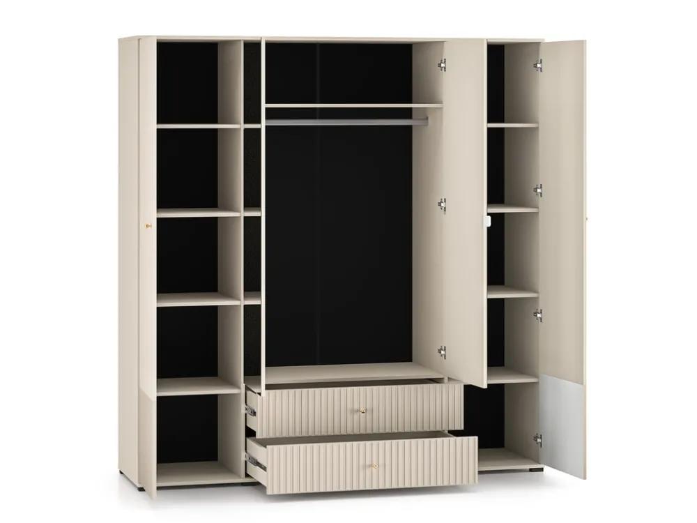 Szafa SOPHIE to połączenie elegancji, nowoczesnego designu i praktycznego wnętrza, które sprosta potrzebom nawet najbardziej wymagających użytkowników. Jej subtelny kolor cashmere oraz ozdobne lamele nadają jej wyjątkowego charakteru, który doskonale wkomponuje się zarówno w sypialnię, jak i przedpokój. Przemyślany układ półek, szuflad i drążka gwarantuje komfortowe przechowywanie wszystkich niezbędnych rzeczy.