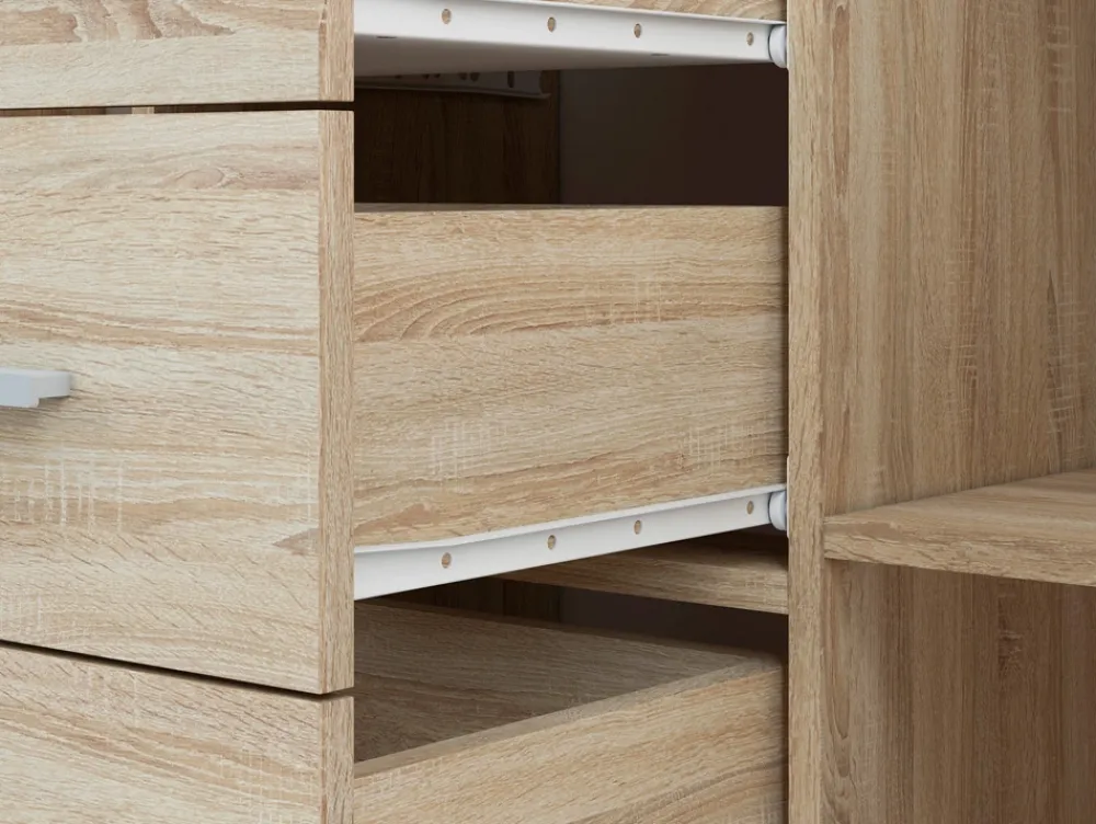 - Szuflady poruszają się na prowadnicach rolkowych.
