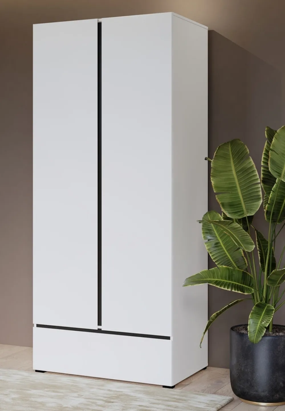 Solidna konstrukcja i wykończenie obrzeży trwałą okleiną ABS to gwarancja długowieczności i odporności na codzienne użytkowanie. Minimalistyczna forma szafy doskonale współgra z nowoczesnym wystrojem wnętrza, podkreślając jego charakter.