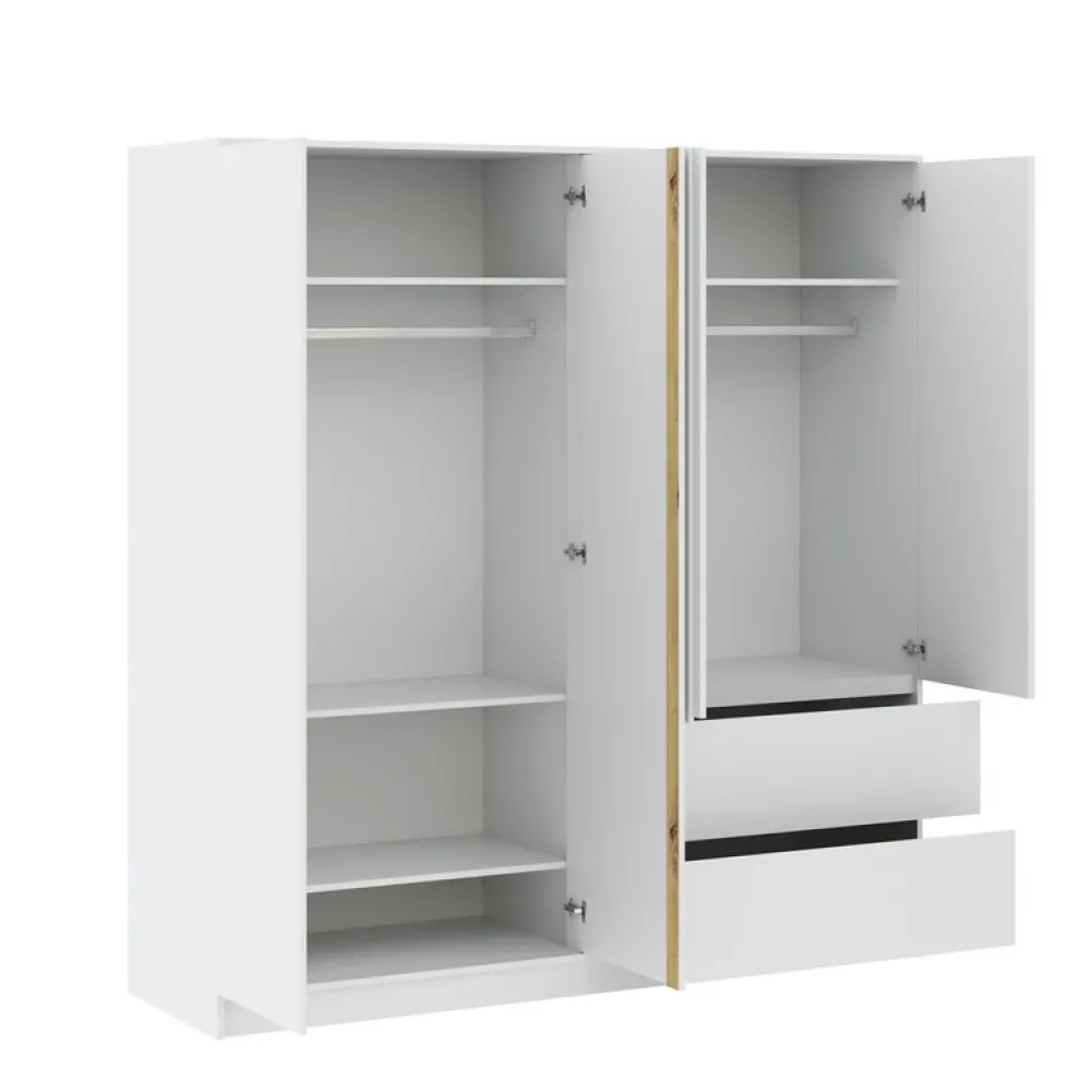 Szafa 195 cm do sypialni BALVIO to idealne rozwiązanie dla osób, które cenią porządek i minimalistyczny styl. Dzięki swojej szerokości oferuje imponującą ilość miejsca na ubrania, pościel czy akcesoria, a matowe, białe wykończenie optycznie powiększa przestrzeń i dodaje wnętrzu świeżości. BALVIO to mebel, który harmonijnie łączy funkcjonalność z nowoczesnym designem.