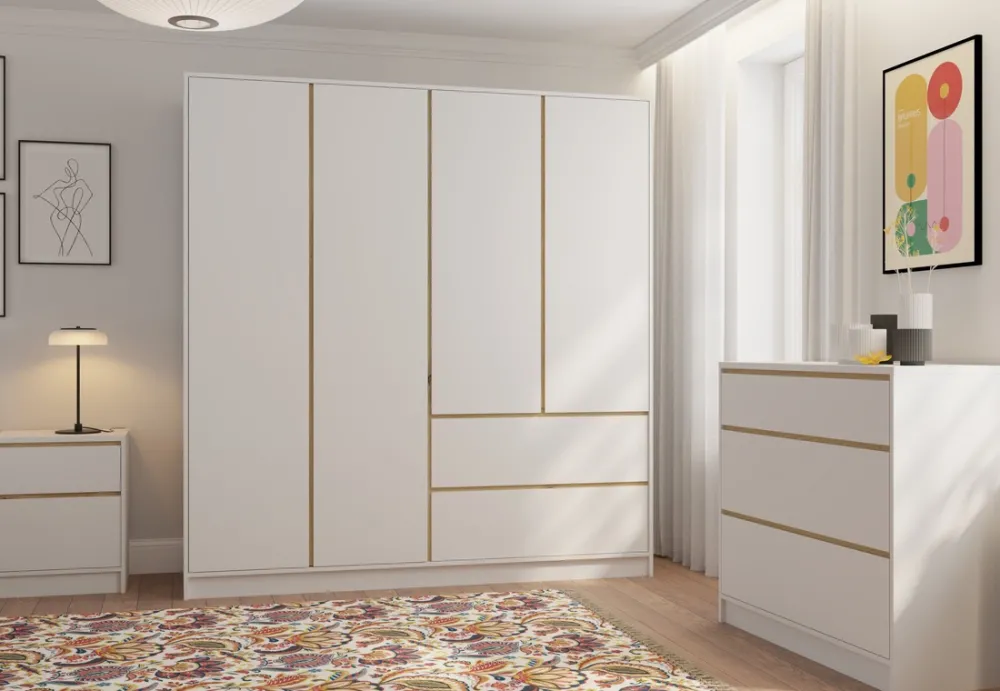 Zastanawiasz się, czy szafa 195 cm do sypialni zmieści się w Twoim wnętrzu? Dzięki klasycznemu białemu kolorowi i matowemu wykończeniu, BALVIO doskonale wpisze się nawet w mniejsze przestrzenie, optycznie je rozjaśniając. To nie tylko mebel – to stylowy sposób na codzienną organizację.