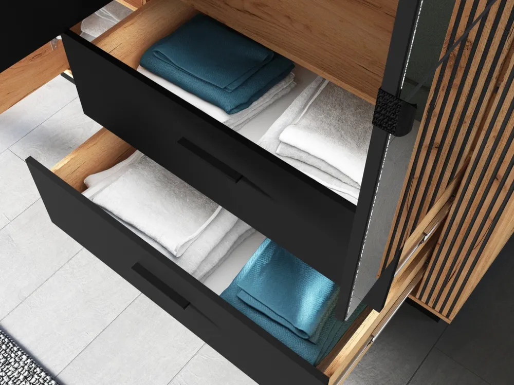✅ Dwie głębokie szuflady – z pełnym wysuwem i wzmocnionym dnem na większy udźwig