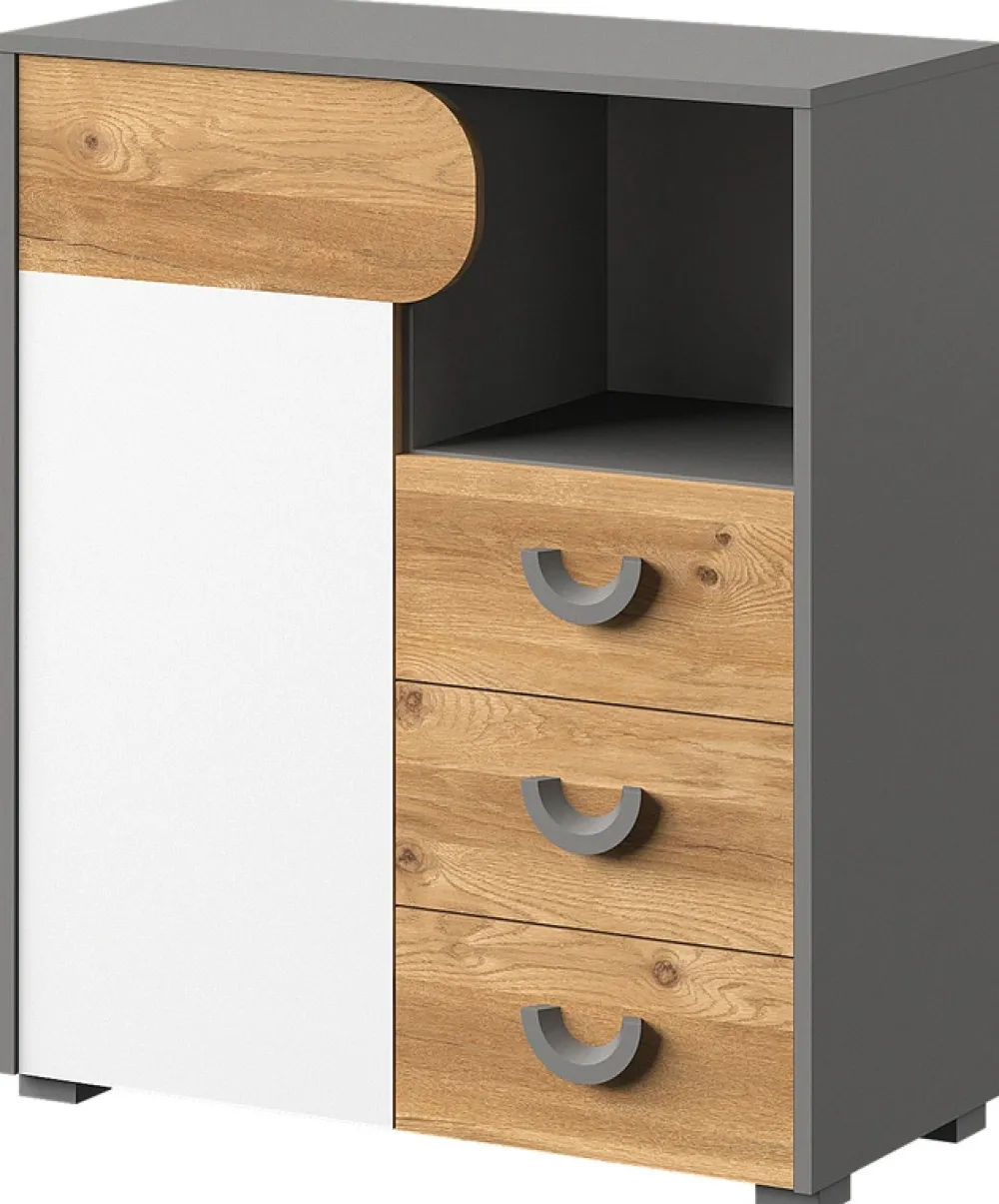 - Zestaw COOLIFY to idealne meble do pokoju młodzieżowego. W skład zestawu wchodzą: regał, biurko, półka wisząca, łóżko, komoda oraz szafa. Wykonane z płyty laminowanej 16 mm. Meble występują w wybarwieniu: dąb nash, biały brylantowy oraz grafit.