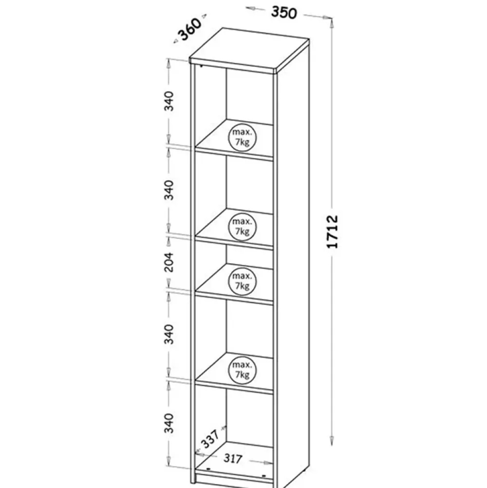 Drugi regał na książki w zestawie to esencja otwartości – bez drzwi, z gościnnymi półkami, które zapraszają do umieszczenia na nich ulubionych tytułów. To miejsce, gdzie Twoje książki mogą być na wyciągnięcie ręki, zawsze gotowe do ponownego odkrywania ich treści.