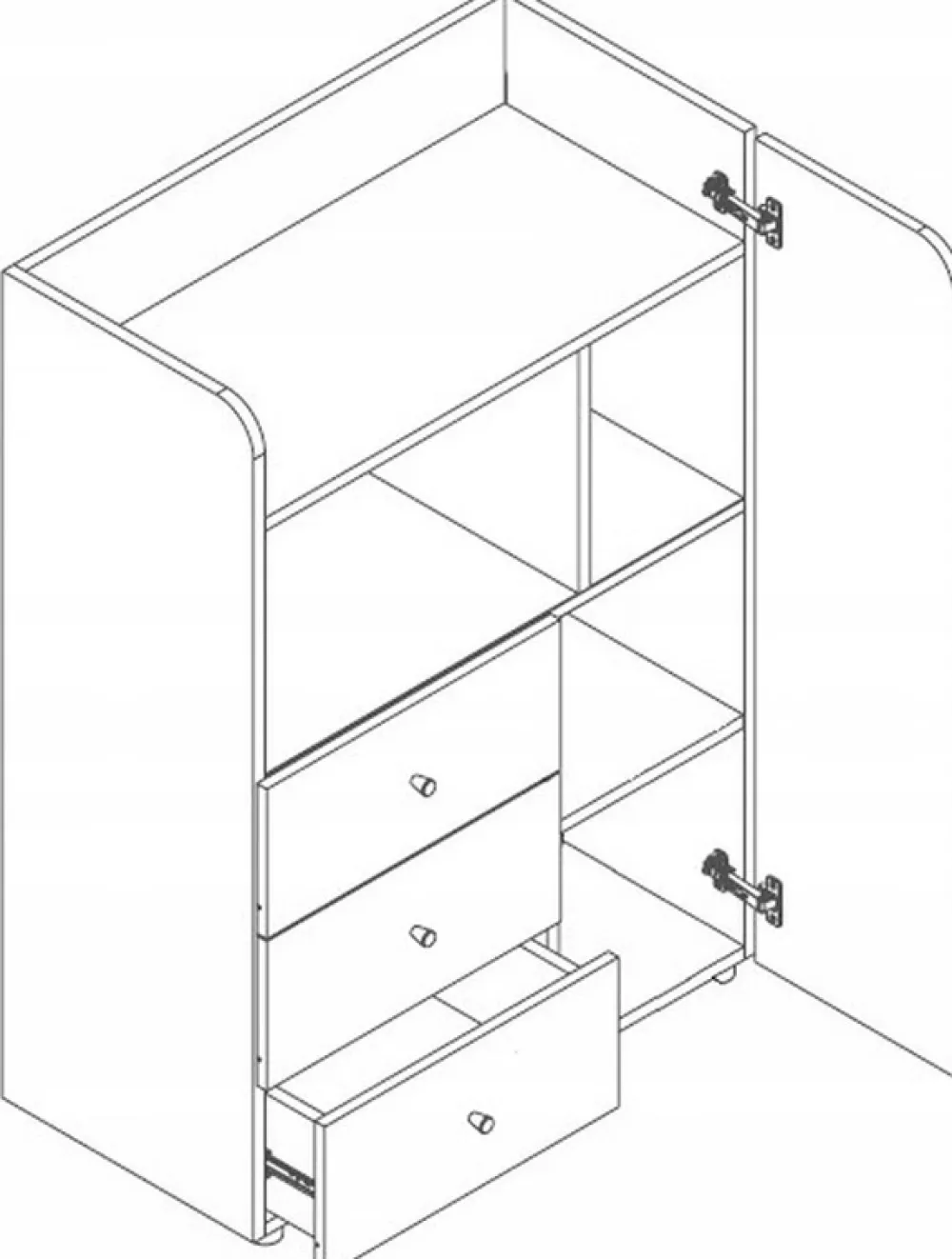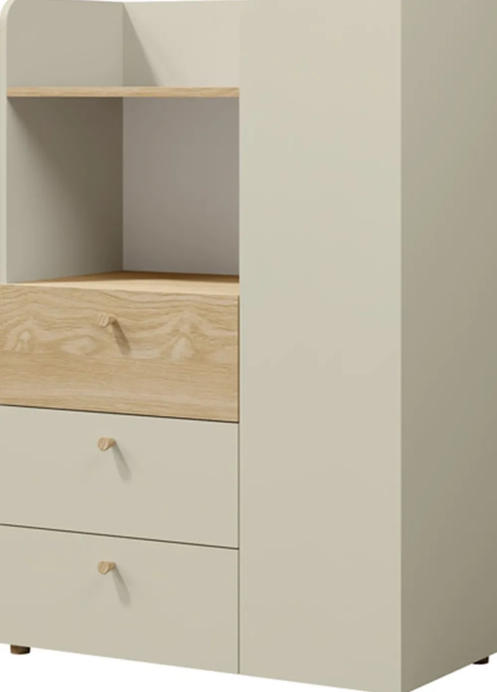 Ten elegancki mebel wyposażony jest w dwie otwarte półki, które stanowią doskonałe miejsce na ekspozycję ulubionych książek, pamiątek czy dekoracji. Dzięki łatwemu dostępowi do tych przestrzeni, Twoje dziecko będzie mogło swobodnie sięgać po swoje skarby i prezentować je w efektowny sposób.