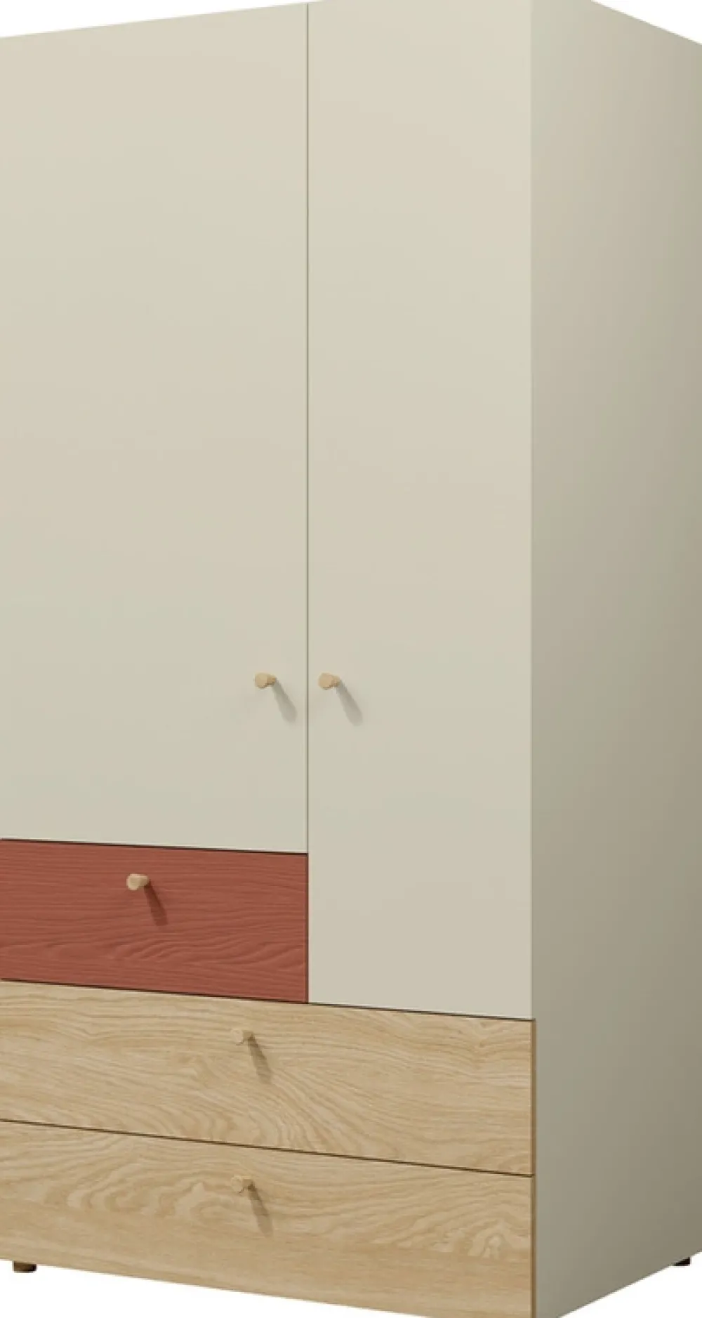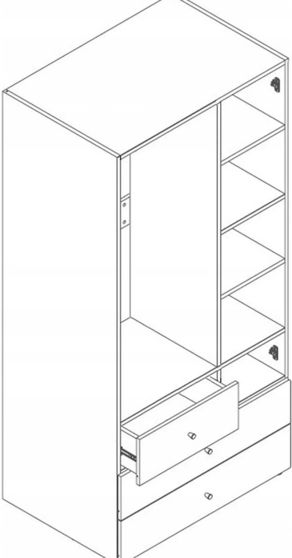 Drzwi po lewej stronie szafy kryją przestronną komorę, idealną do przechowywania ubrań wiszących na wieszakach. Dzięki temu wszystkie ulubione ubrania będą zawsze pod ręką, gotowe do noszenia. Pod drzwiami znajdują się trzy pojemne szuflady, które poruszają się na prowadnicach kulkowych. To gwarancja płynnego i cichego otwierania oraz zamykania, co zapewnia wygodę użytkowania na co dzień.