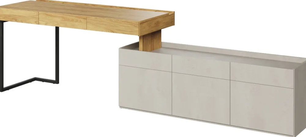 - Zestaw mebli młodzieżowych TEEN FLEX to propozycja pozwalająca na komfortową naukę oraz spędzanie czasu przy komputerze w nowoczesnym stylu. Zestaw składa się z biurka z trzema szufladami i komody z półkami. Meble otwierają się za pomocą push to open.