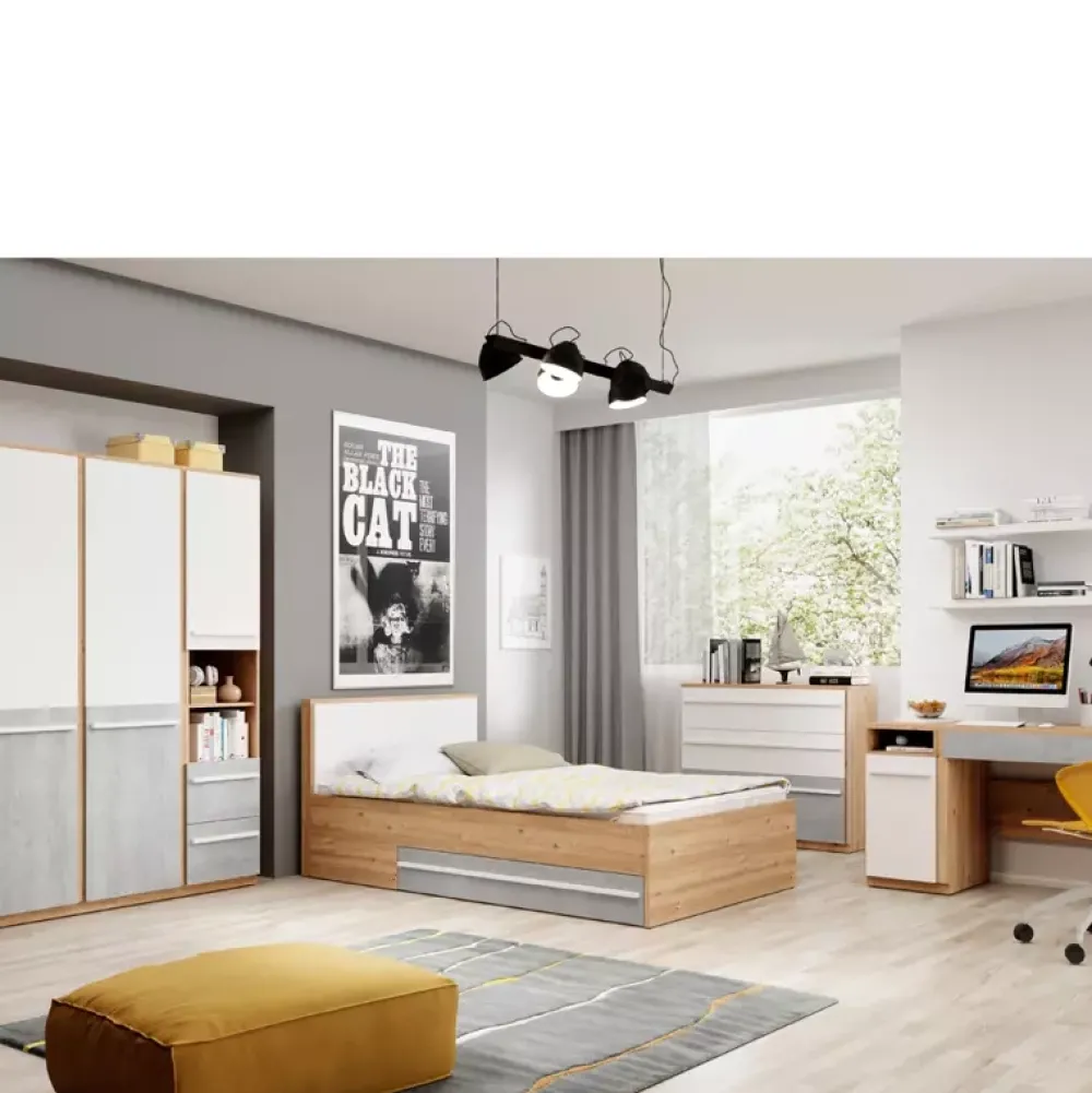 Styl szafy młodzieżowej jest bardzo nowoczesny, co sprawia, że pasuje do różnych aranżacji wnętrz. Prosta forma i czyste linie sprawiają, że szafa jest bardzo funkcjonalna i niezwykle estetyczna. Wykonana jest z trwałych materiałów, co zapewnia nie tylko długotrwałość użytkowania, ale również bezpieczeństwo użytkowników.