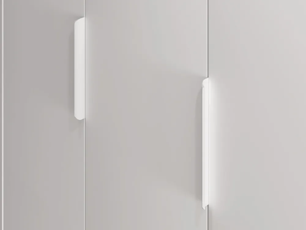 - Uchwyty zostały wykonane z aluminium w białym kolorze. Zaokrąglenie boczne czyni doskonałą dekorację mebla.