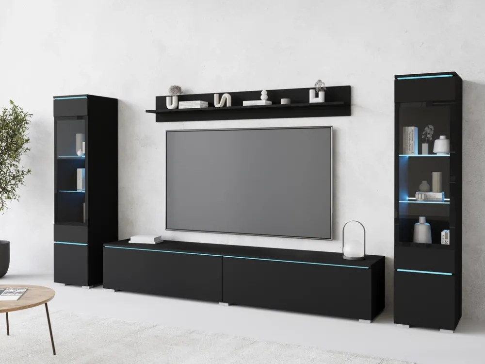 Nowoczesna meblościanka do salonu VELLORE XL jest kwintesencją elegancji i funkcjonalności, zaprojektowana z myślą o nowoczesnych wnętrzach. Jej minimalistyczny design harmonijnie łączy w sobie estetykę z praktycznością, oferując zarazem przestrzeń do przechowywania, jak i dekoracji.