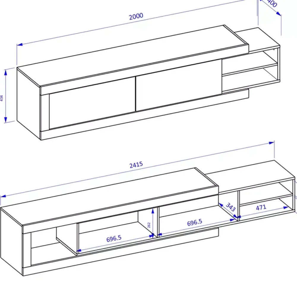 - Wewnętrzna część szafki rtv rozsuwa się na kółku, co pozwala na zwiększenie szerokości.