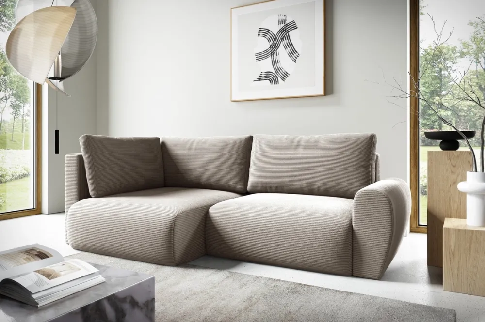 Sztruksowy narożnik do salonu dostępny jest w różnych wariantach, co umożliwia dopasowanie go do indywidualnych preferencji i aranżacji wnętrza. Jego uniwersalny design i neutralne barwy sprawiają, że mebel ten łatwo wpasuje się w różnorodne style dekoracyjne.