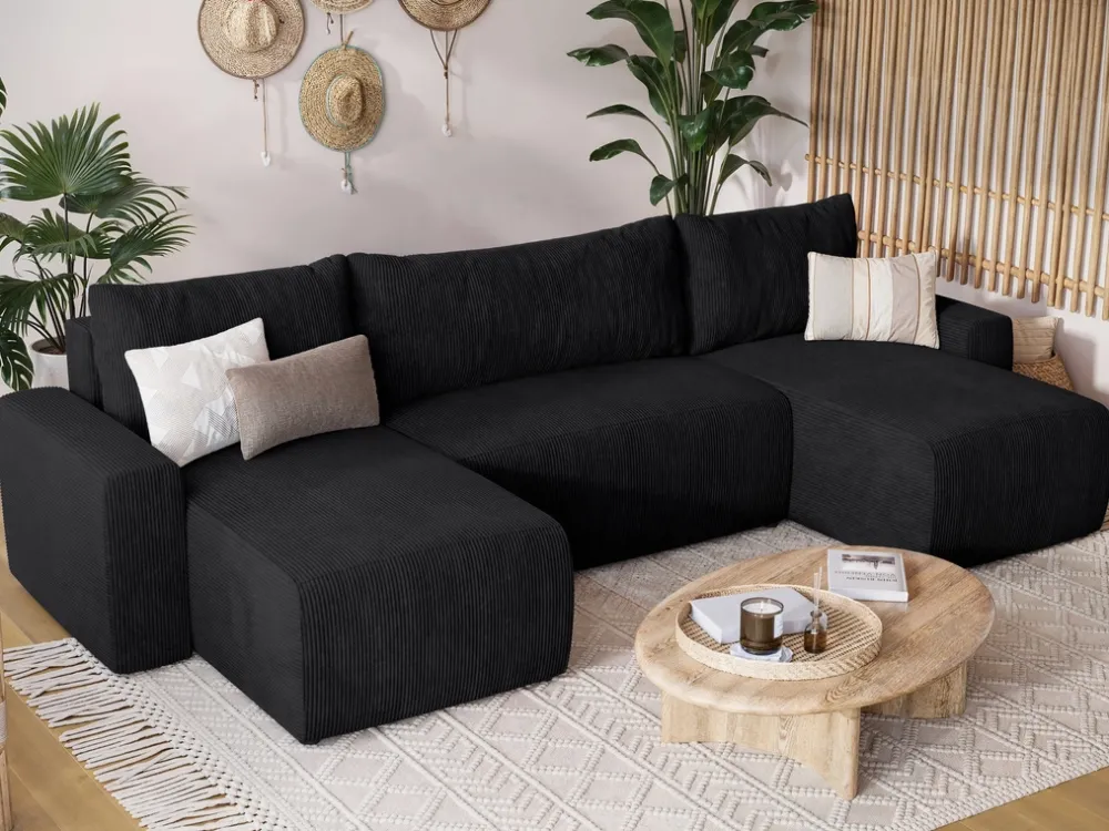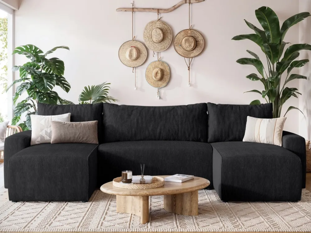 Narożnik w kształcie U z funkcją spania 125×275 cm PLUSH U to idealne rozwiązanie dla każdego, kto ceni sobie wygodę i praktyczność. Dzięki swojemu przemyślanemu designowi doskonale sprawdzi się zarówno w przestronnych salonach, jak i w mniejszych pomieszczeniach, oferując mnóstwo miejsca do siedzenia i spania.