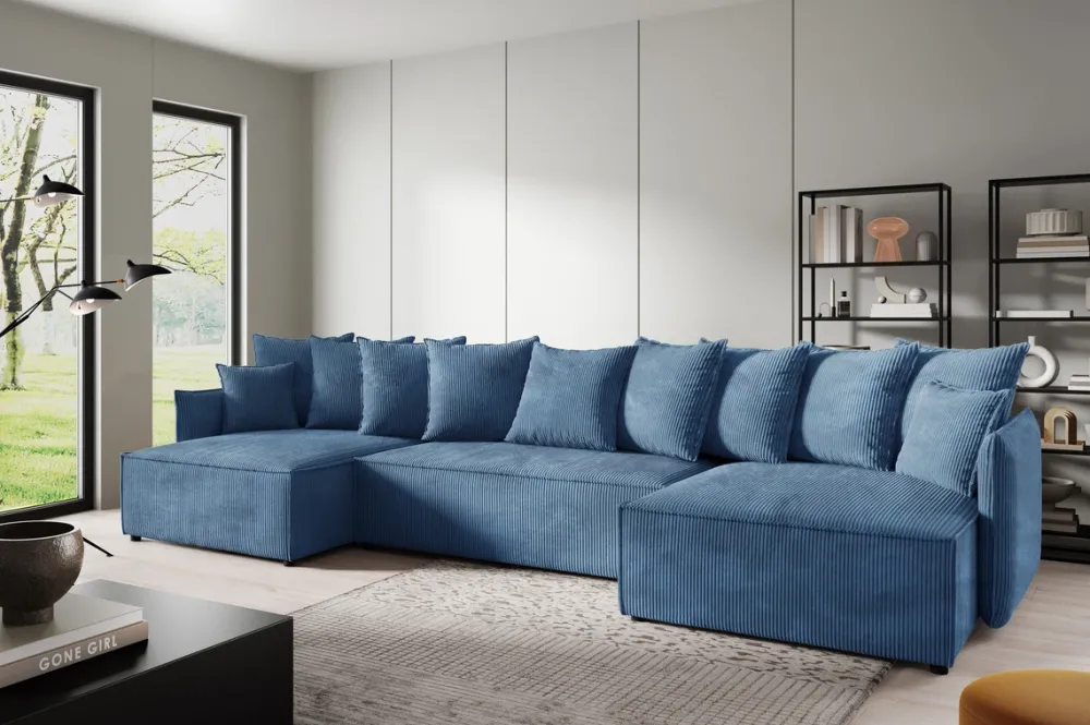 Narożniki>BROMARKT Duży narożnik niebieski do salonu z funkcją spania i pojemnikiem ARTUR
