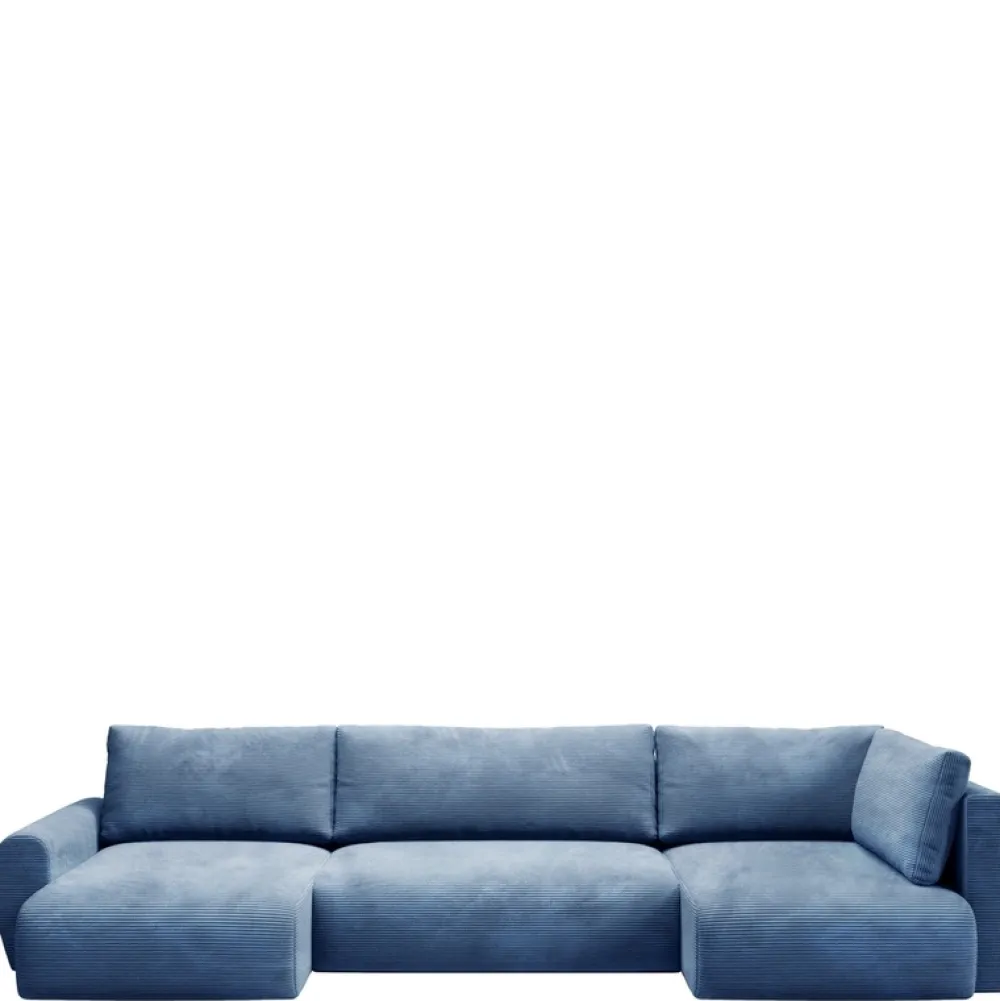 Sztruksowy narożnik U PATI MAXI to idealne rozwiązanie dla osób ceniących sobie zarówno komfort, jak i nowoczesny design. Kształt U narożnika sprzyja wspólnym chwilą z bliskimi, umożliwiając użytkownikom swobodne konwersacje i wspólne spędzanie czasu, dzięki dużej ilości miejsca do siedzenia. Obłe kształty oraz zaokrąglone boczki dodają meblowi lekkości i nowoczesnego wyglądu, a jednocześnie sprawiają, że jest on bardziej przyjazny dla domowników, w tym dzieci.