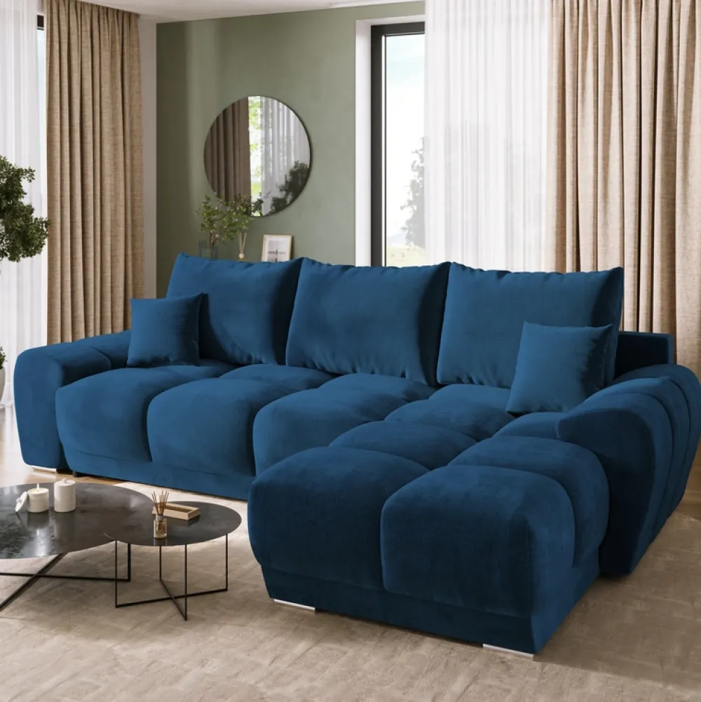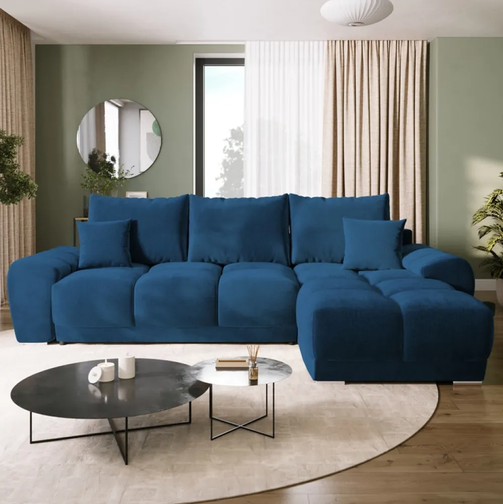 Narożniki>BROMARKT Granatowy narożnik z funkcją spania do salonu NUBES