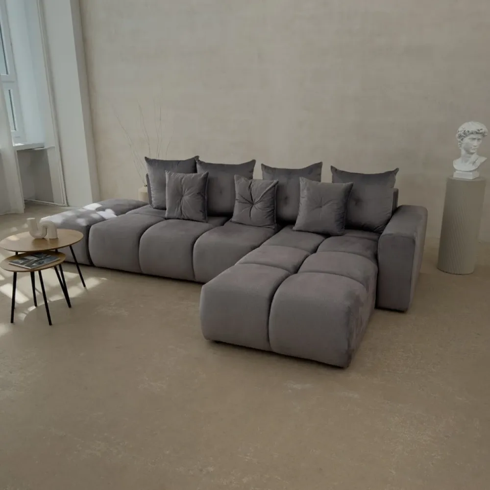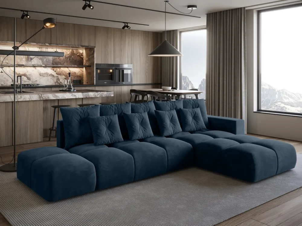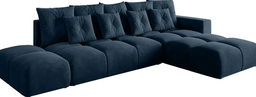 Narożniki>BROMARKT Granatowy narożnik z funkcją spania do salonu RAMIRO welurowy