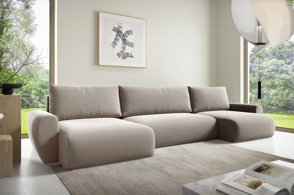 Narożniki>BROMARKT Nowoczesny narożnik z funkcją spania do salonu beżowy PATI U
