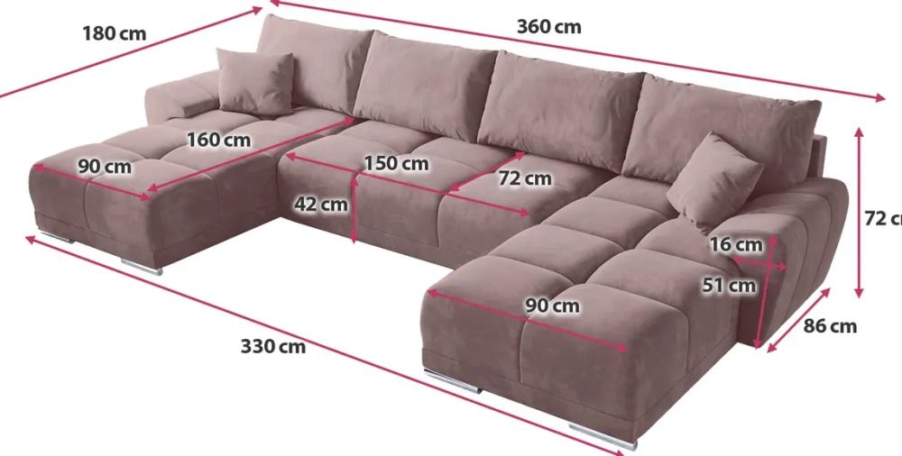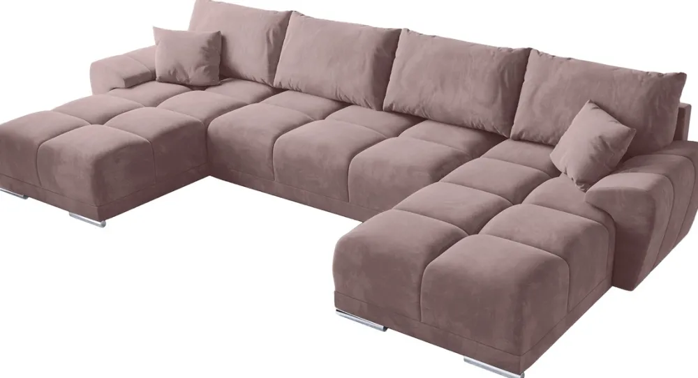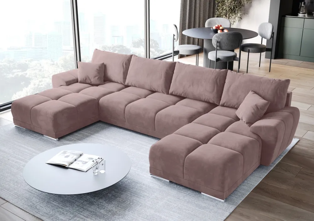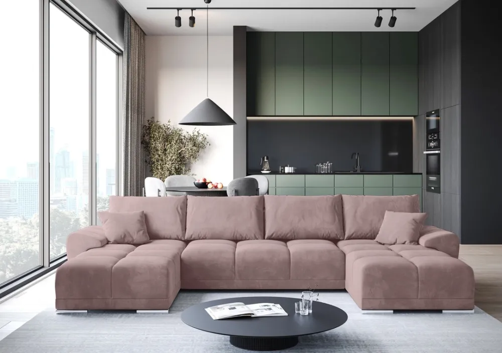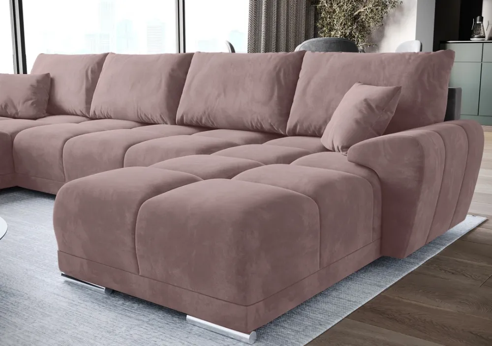 Kształt U welurowego narożnika oferuje sporo miejsca do siedzenia dla Twoich bliskich i gości, zmieniając salon w ulubione miejsce w Twoim domu.