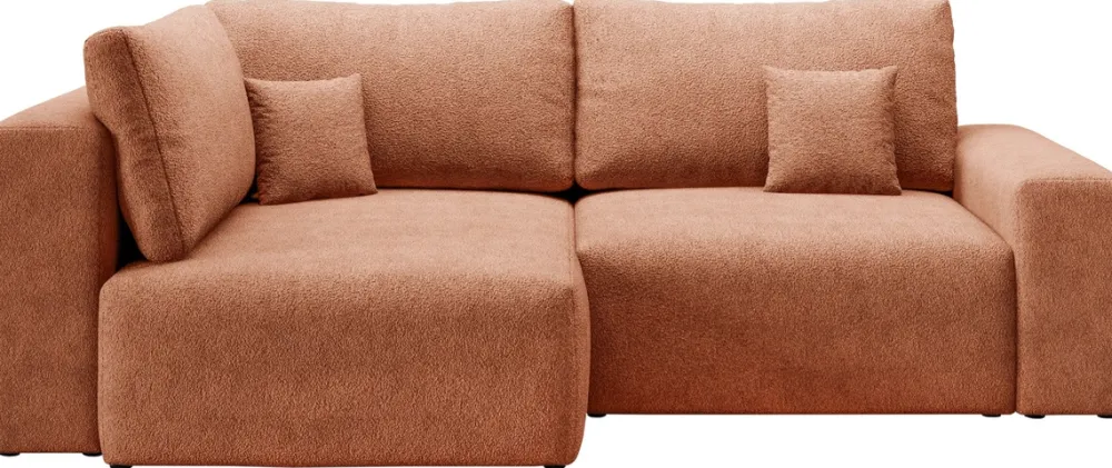 Oprócz funkcjonalności narożnik z funkcją spania CAMILO DUO zachwyca swoją kolorystyką. Tkanina boucle dodaje meblowi subtelnej elegancji, a neutralne kolory tkaniny są łatwe do dopasowania do różnorodnych wnętrz. Komplet trzech dużych poduch oparciowych oraz dwóch mniejszych poduszek zapewnia nie tylko komfort, ale także stanowi stylowe uzupełnienie całości.