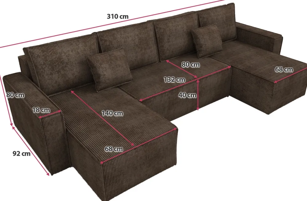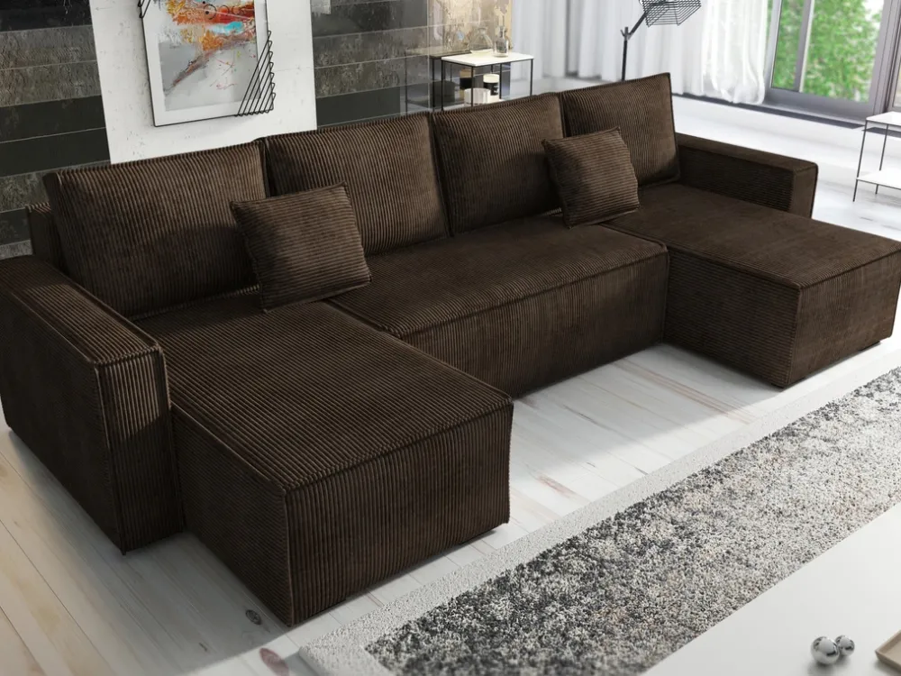 Sztruksowy narożnik DEXTER U to idealne rozwiązanie dla nowoczesnych salonów, które łączą estetykę z praktycznymi rozwiązaniami. Wyposażony w funkcję spania o powierzchni 138×268 cm z automatem DL, pozwala w szybki i łatwy sposób przekształcić sofę w przestronne łóżko dla gości. Jego nowoczesny design z pewnością przyciągnie uwagę i stanie się centralnym punktem każdego wnętrza, oferując wygodę i styl.