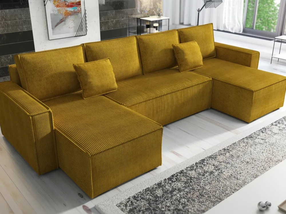 Sztruksowy narożnik DEXTER U to idealne rozwiązanie dla nowoczesnych salonów, które łączą estetykę z praktycznymi rozwiązaniami. Wyposażony w funkcję spania o powierzchni 138×268 cm z automatem DL, pozwala w szybki i łatwy sposób przekształcić sofę w przestronne łóżko dla gości. Jego nowoczesny design z pewnością przyciągnie uwagę i stanie się centralnym punktem każdego wnętrza, oferując wygodę i styl.