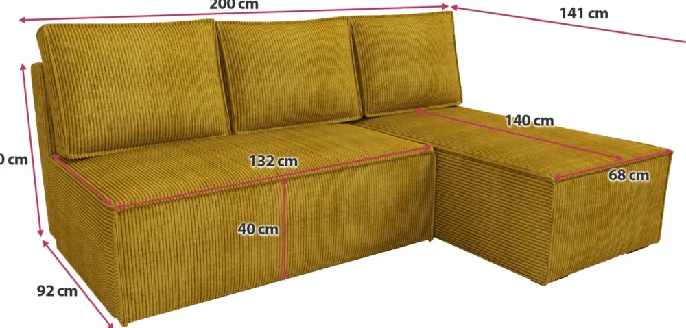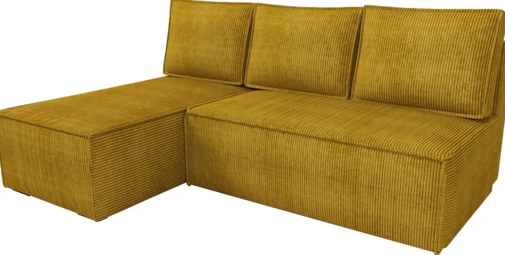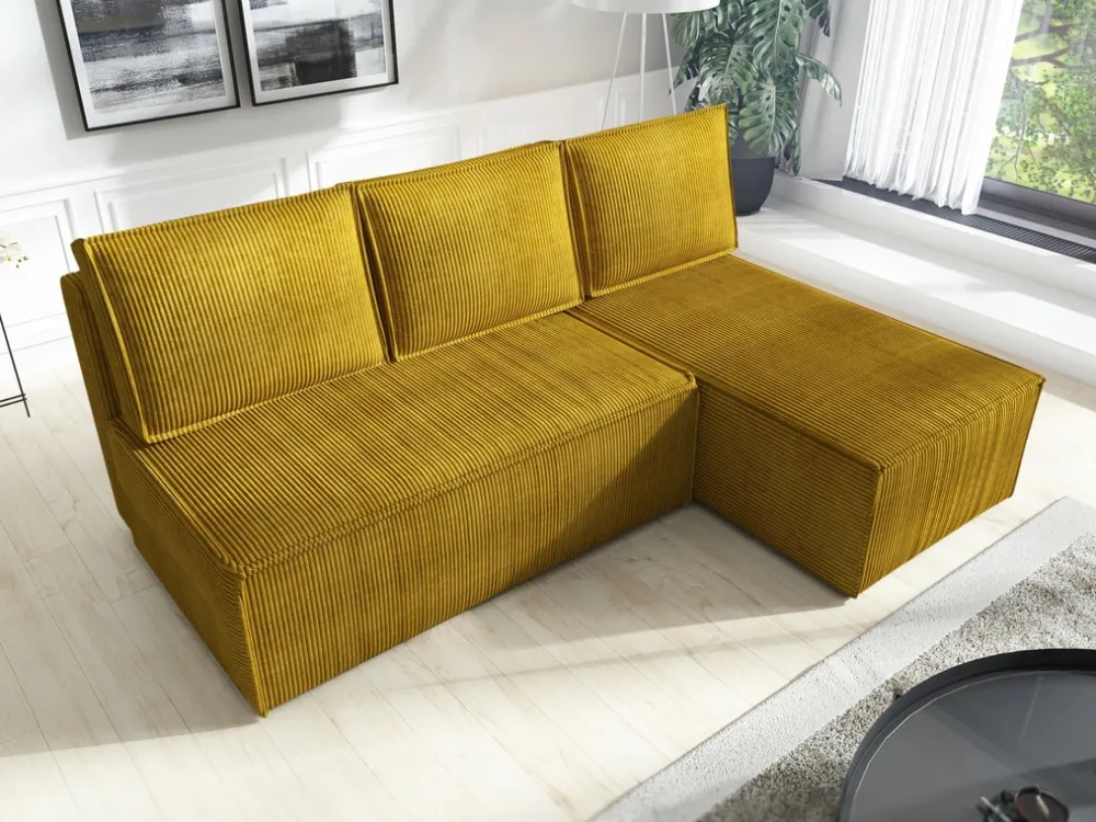 Tapicerka narożnika wykonana jest z wysokiej jakości tkaniny sztruksowej, która wyróżnia się swoją prążkowaną strukturą i miękkością. Sztruks dodaje meblowi niepowtarzalnego stylu, jednocześnie oferując trwałość i odporność na codzienne użytkowanie. Dzięki temu, narożnik nie tylko świetnie się prezentuje, ale także zapewnia długotrwały komfort i estetykę przez lata.