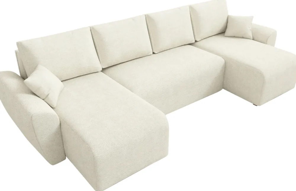 - Narożnik boucle do salonu ROTTERDAM U posiada funkcję spania o powierzchni 138×268 cm, która rozkładana jest za pomocą sprężynowego automatu DL. Pod siedziskiem znajduje się pojemnik na pościel. Narożnik w tkaninie boucle dostępnej w wielu kolorach.