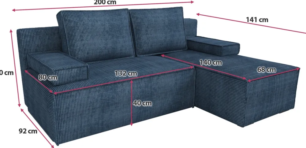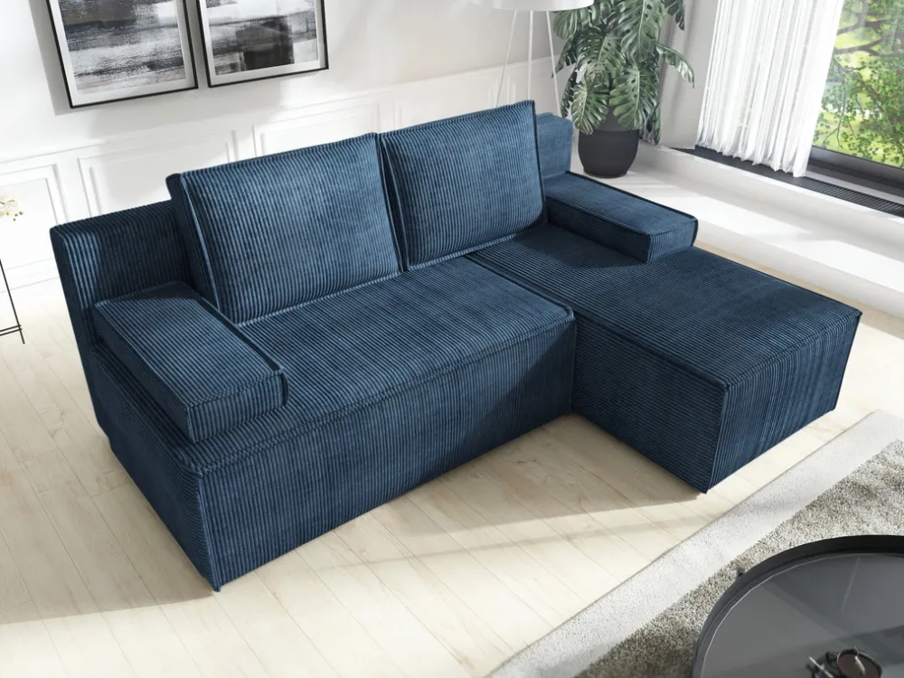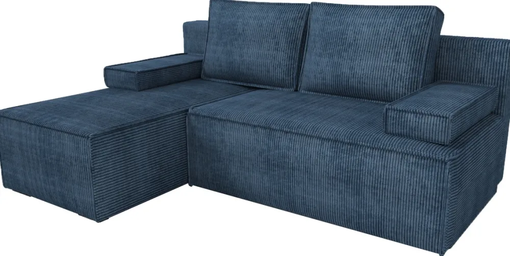 Narożnik tapicerowany jest tkaniną sztruksową, która wyróżnia się miękkością i charakterystyczną prążkowaną strukturą. Sztruks nie tylko dodaje narożnikowi elegancji, ale także jest wytrzymały i odporny na codzienne użytkowanie. Dzięki temu narożnik nie tylko świetnie wygląda, ale również zapewnia długotrwały komfort. Sztruksowa tapicerka wprowadza do wnętrza przytulność, która podkreśla nowoczesny charakter mebla.