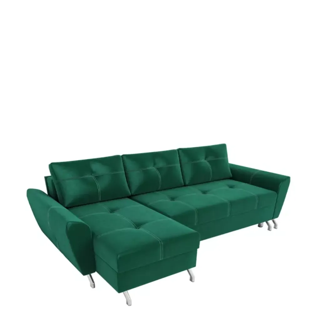 Stylowy narożnik do nowoczesnych wnętrz wykonany z wysokiej jakości materiałów. Eleganckie pikowanie na siedziskach i poduszkach połączono z prostymi przeszyciami, tworząc w ten sposób charakterystyczny wzór. Narożnik wyposażyć można w mechanizm ułatwiający rozkładanie w systemie DL wraz z dodatkowym pojemnikiem na pościel znajdującym się pod wysuniętą leżanką. Jeśli narożnik posłużyć ma jako miejsce spania codziennego istnieje możliwość wymiany pianki T30 w siedzisku i oparciu na sprężyny Bonell, znacznie podnoszące komfort snu, a także trwałość całej konstrukcji.