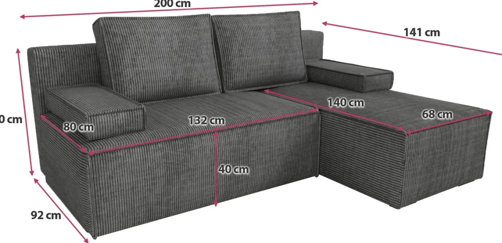 Pod siedziskiem narożnika znajduje się pojemny schowek na pościel, który ułatwia organizację przestrzeni. Funkcjonalność pojemnika na pościel sprawia, że Twój salon będzie nie tylko stylowy, ale także uporządkowany.