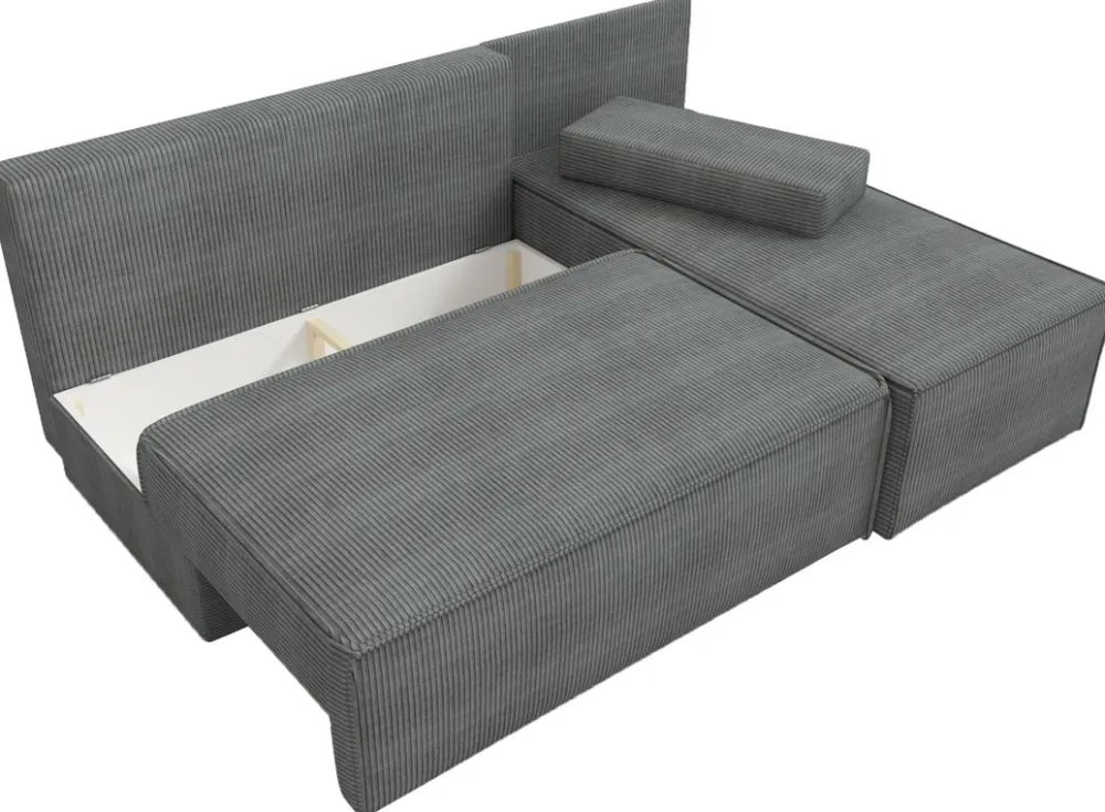 Pod siedziskiem narożnika znajduje się pojemny schowek na pościel, który ułatwia organizację przestrzeni. Funkcjonalność pojemnika na pościel sprawia, że Twój salon będzie nie tylko stylowy, ale także uporządkowany.