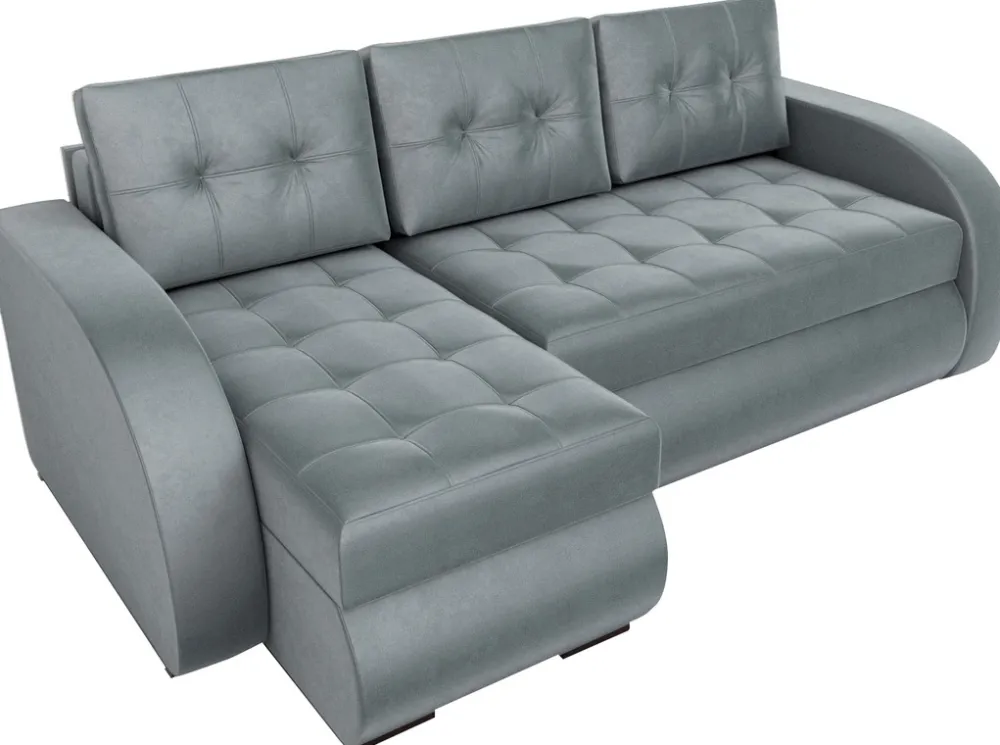 Narożnik obity jest wysokiej jakości tkaniną welurową, która charakteryzuje się miękkością oraz eleganckim, subtelnym połyskiem. Welur dodaje wnętrzu odrobiny luksusu, jednocześnie zapewniając niezwykły komfort użytkowania. Dodatkowo materiał ten jest trwały i odporny na codzienne zużycie, co sprawia, że narożnik zachowa swój wyjątkowy wygląd przez lata.