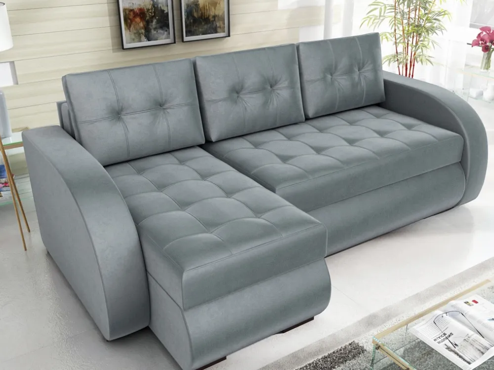 - Pojemnik na pościel i automat DL – Narożnik posiada możliwość doposażenia w dodatkowy pojemnik na pościel umiejscowiony w wysuniętej części narożnika. Wraz z drugim pojemnikiem na pościel narożnik zostaje wzbogacony o sprężynowy mechanizm rozkładania DL.
