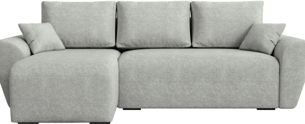 Pod siedziskiem narożnika znajduje się pojemny schowek na pościel, który ułatwia organizację przestrzeni. To praktyczne rozwiązanie pozwala na wygodne przechowywanie kołdry, poduszek czy koców, zawsze pod ręką, bez konieczności dodatkowych mebli.
