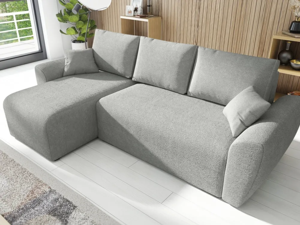 - Narożnik z funkcją spania ROTTERDAM został wykonany w tkaninie typu baranek. Funkcja spania o powierzchni 138×200 cm pozwala na okazjonalny sen. Pod siedziskiem znajduje się głęboki pojemnik na poduszki i pościel. Narożnik posiada wiele dostępnych kolorów