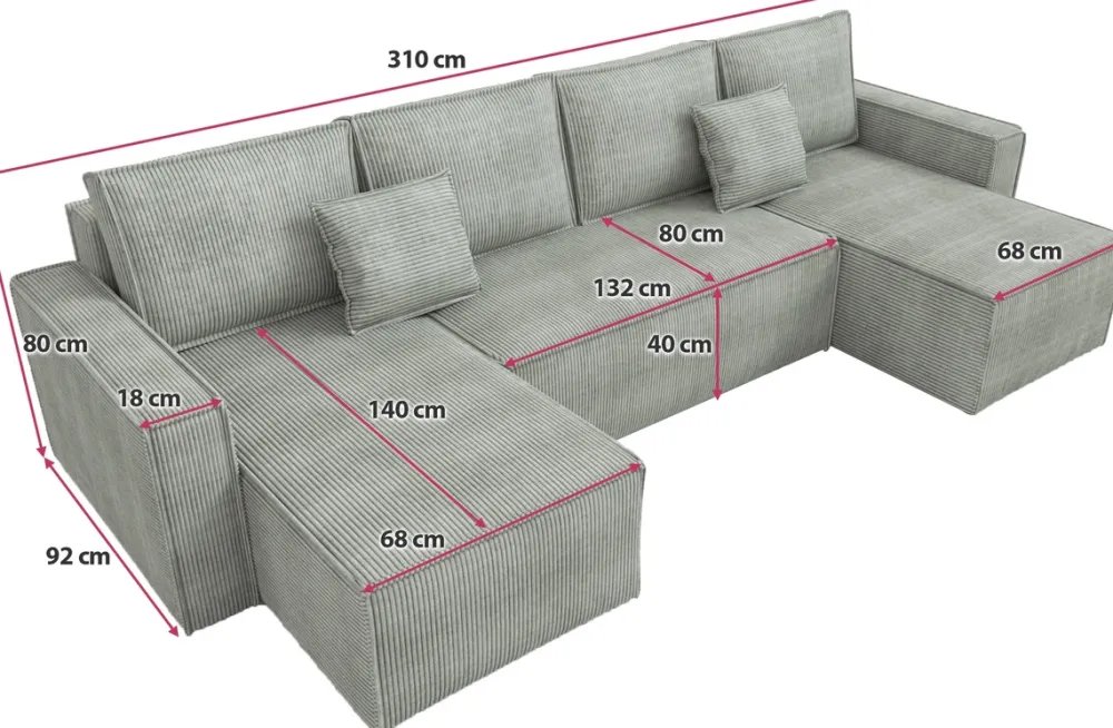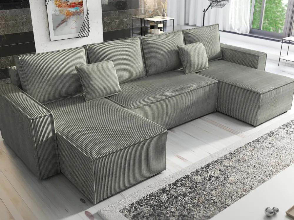 Sztruksowy narożnik DEXTER U to idealne rozwiązanie dla nowoczesnych salonów, które łączą estetykę z praktycznymi rozwiązaniami. Wyposażony w funkcję spania o powierzchni 138×268 cm z automatem DL, pozwala w szybki i łatwy sposób przekształcić sofę w przestronne łóżko dla gości. Jego nowoczesny design z pewnością przyciągnie uwagę i stanie się centralnym punktem każdego wnętrza, oferując wygodę i styl.