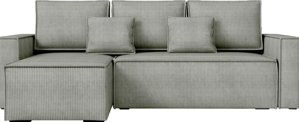 Tapicerka narożnika została wykonana z wysokiej jakości tkaniny sztruksowej, która charakteryzuje się miękkością i elegancką, prążkowaną strukturą. Sztruks nie tylko dodaje narożnikowi nowoczesnego stylu, ale jest także przyjemny w dotyku i odporny na codzienne użytkowanie. Dzięki temu narożnik świetnie sprawdzi się w każdym salonie, tworząc przestrzeń do relaksu i odpoczynku.