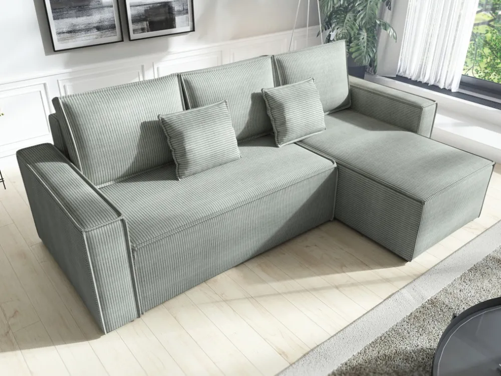 Narożnik sztruksowy DEXTER to połączenie nowoczesnego designu z praktycznymi funkcjami, które idealnie wpisują się w potrzeby współczesnych wnętrz. Z funkcją spania o powierzchni 138×200 cm, jest doskonałym rozwiązaniem zarówno do codziennego relaksu, jak i przyjmowania gości na noc. Jego minimalistyczna forma i estetyczny wygląd wprowadzą do Twojego salonu nowoczesny akcent, jednocześnie zapewniając pełen komfort.