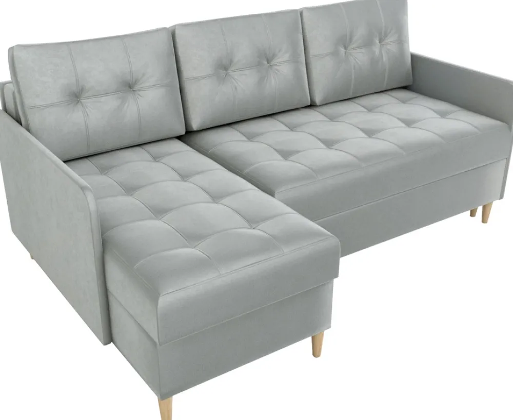 Pod siedziskiem narożnika znajduje się pojemny schowek na pościel, który ułatwia przechowywanie kołder, poduszek czy koców. Dzięki temu możesz zaoszczędzić miejsce w szafie, a wszystkie niezbędne rzeczy zawsze mieć pod ręką. Pojemnik na pościel to świetne rozwiązanie dla osób, które cenią sobie funkcjonalność i porządek w salonie.