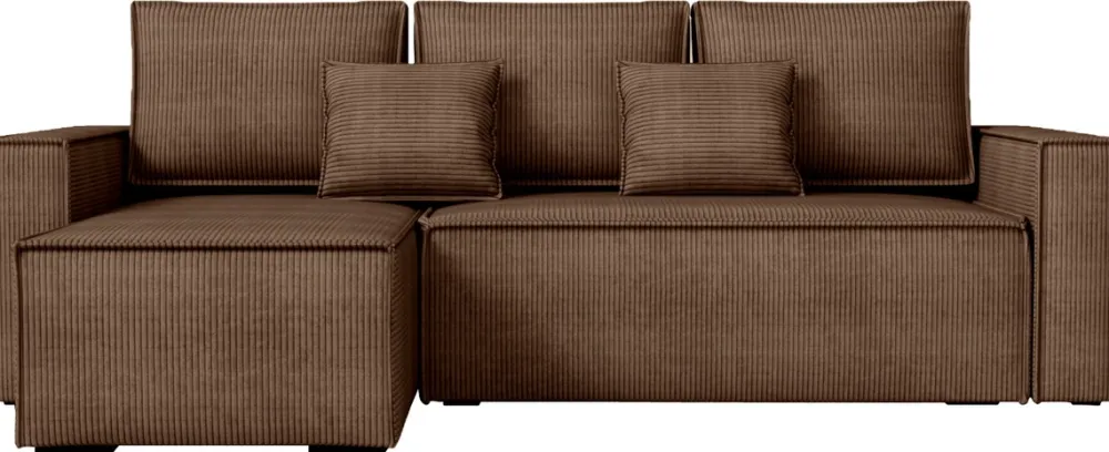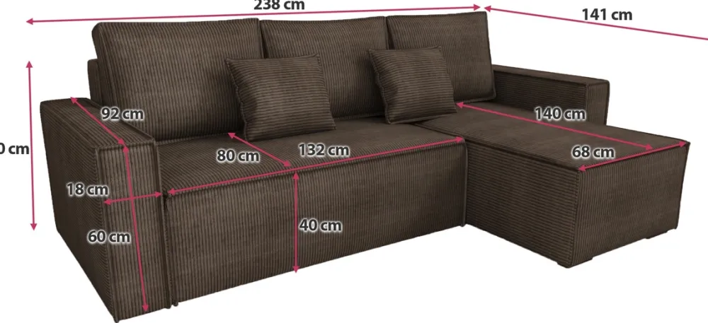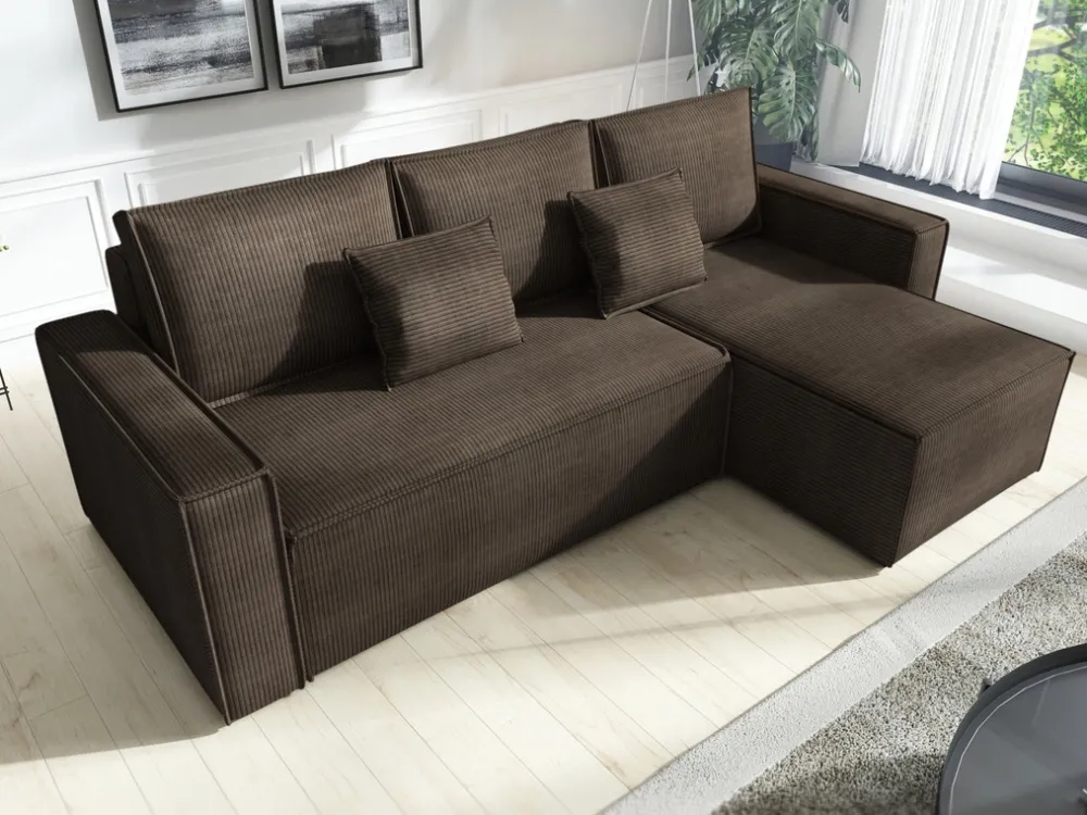 - Sztruksowy narożnik DEXTER posiada funkcję spania o wymiarze 138×200 cm, która pozwala na okazjonalny sen dla gości. Pod siedziskiem znajduje się głęboki pojemnik na poduszki i koce. Narożnik jest dostępny w wielu atrakcyjnych kolorach.