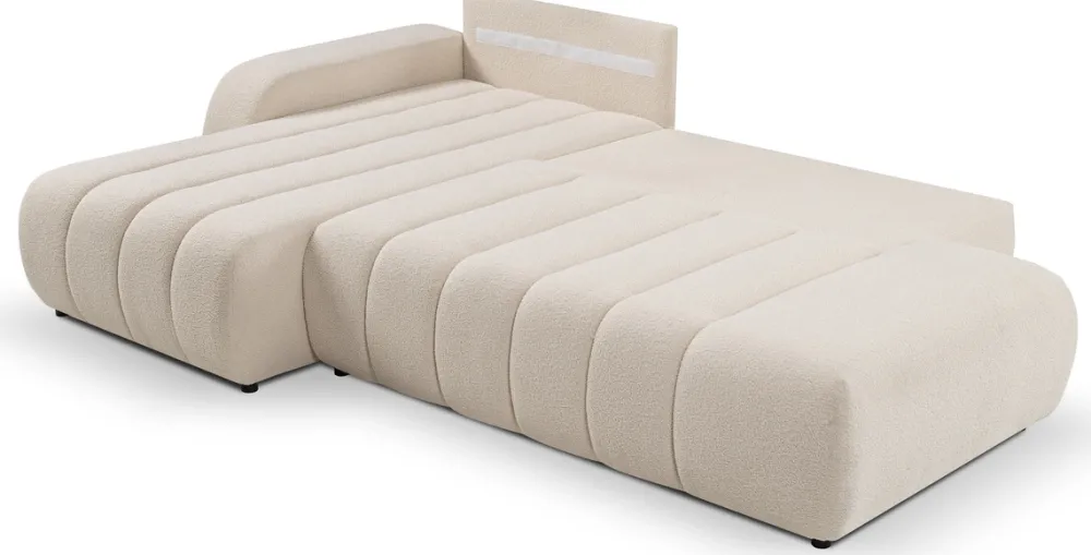 BLISS to beżowy narożnik z funkcją spania, który harmonijnie wpisze się w nowoczesne aranżacje salonu. Jego minimalistyczny, a zarazem elegancki wygląd sprawia, że doskonale komponuje się z różnymi dodatkami i kolorami, wnosząc do wnętrza lekkość i świeżość.